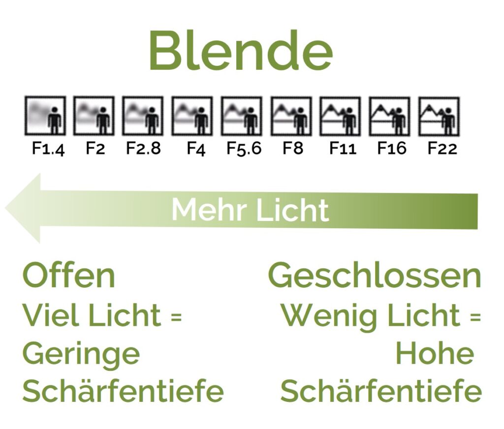 - Die Blende sitzt im Objektiv und ist für die Lichtmenge entscheidend.
